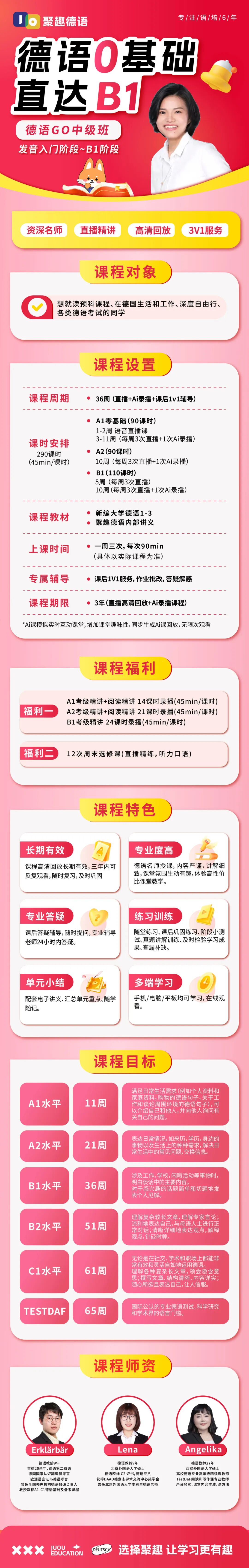 针对德国生活场景教学,学完能直接用在办事、沟通上;
