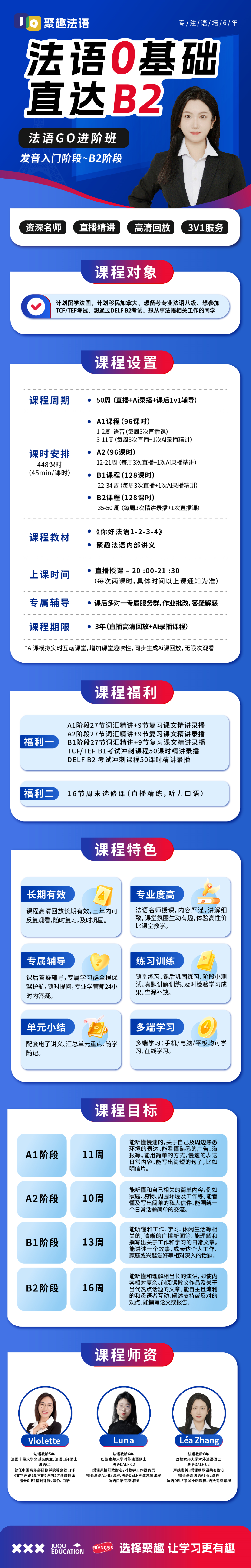 聚趣法语作为专注于小语种教学的专业平台,正是你最靠谱的伙伴,为你提供: