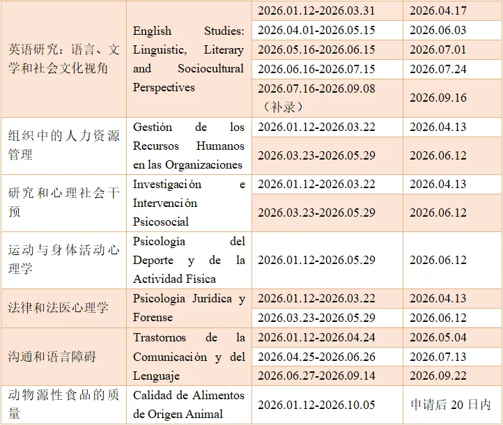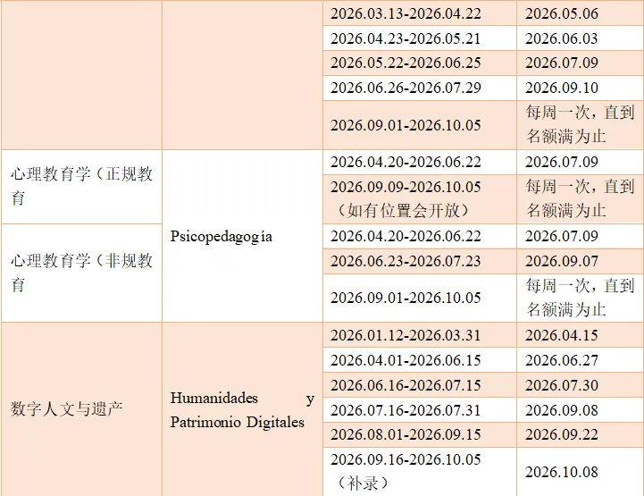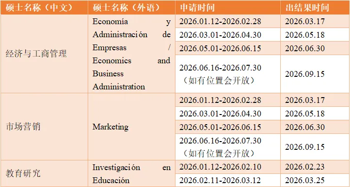 巴塞罗那自治大学2026年部分硕士专业申请时间安排如下:
