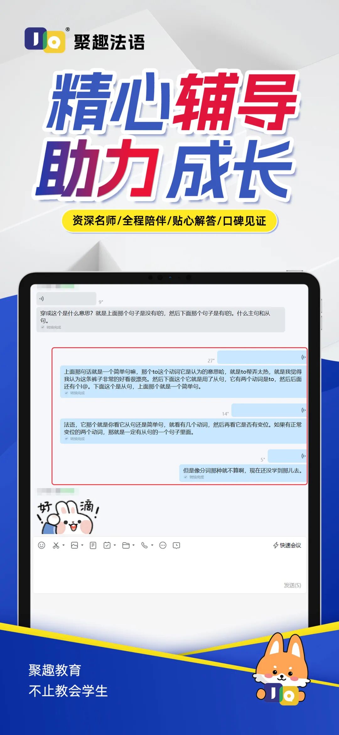 为解决传统语言学习中 “课后无人管、问题难解决” 的痛点,聚趣法语提供 1V1 督学和无限次纠音的保姆级服务。专属学管师会及时响应学员的疑问,每周根据学员的学习情况制定个性化学习计划,让学习更有方向。