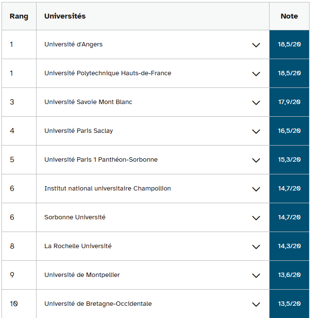 该校2025年三年制本科生毕业率达50.6%。若计入四年课程,十名学生中有六人获得学士学位。 该大学最突出的优势在于其附加值,在所列院校中位居首位:其培养学生进步的能力非常出色。 该大学在艺术、文学和语言领域表现尤为突出。尽管三年内毕业率下降了4.5个百分点(2025年为60.5%,2024年为65%),该校仍位居排名榜首。如果将四年内毕业率计算在内,该比率达到68.9%,而去年为70.9%。 巴黎第二大学(Panthéon-Assas)和昂热大学位列前三甲 紧随其后的是巴黎第二大学(Panthéon-Assas),该校排名上升一位。凭借三年制课程57%的毕业率和三至四年制课程65.7%的毕业率,该校取得了显著进步。 昂热大学则下滑一位,位列总排名第三。该校三年毕业率为47.9%,三至四年毕业率为55.9%(分别较去年下降0.5和4.5个百分点)。该校还具有较高的附加值。 该校在提供科学和健康领域学士学位的大学中排名第一。在这些学科中,学生的成功率在三年内达到50.9%,在三到四年内达到54.3%。