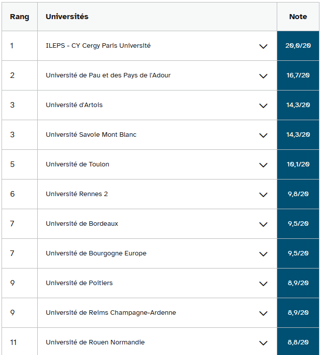 公立大学本科 体育活动科学与技术STAPS 2025年,Parcoursup平台上提交的申请超过13万份,五年间增长了27%,体育科学与运动实践学士学位(STAPS)正吸引着越来越多的学生。该专业现已成为考生最青睐的15个专业之一。 ILEPS-CY塞尔吉巴黎大学蝉联榜首 在体育科学学士学位排名中,今年未出现显著变化。CY塞尔吉巴黎大学(Ileps)体育科学分校连续第三年在我们的主题排名中遥遥领先,71.1%的学生在三年内获得学士学位(较去年上升2.4个百分点)。 然而,三年或四年内毕业率却明显下滑,从2024年的92.5%降至今年的74.2%(下降18.3个百分点)。由于2020届高中毕业生被纳入本次统计,新冠疫情导致的封锁及其对学习条件的影响可能是造成这一下滑的原因。 尽管如此,Ileps在所有大学和所有学科中仍保持着最高的学士学位成功率。其附加值,即促进学生进步的能力,也位居前列。 紧随其后的是波城和阿杜尔地区大学,该校三年制本科课程的毕业率为57.7%,比Ileps低13.4个百分点。在三到四年内,该校67.2%的学生获得了学士学位。阿图瓦大学的体育专业位于利埃文(62),以三年51.5%、三至四年59.3%的毕业率位居第三。 体育科学专业学生人数一年内下降11% 2024年,46.2%的体育科学专业学生在三至四年内获得了学士学位。今年,这一比例降至42.8%(下降3.4个百分点)。这一下降伴随着学生人数的减少:2020年有17435名学生注册了L1课程,而第二年只有15413名(下降11%)。里尔大学和图卢兹第三大学受到的影响尤为严重,一年内分别流失了132名和124名注册学生。 然而,该专业的学生仍然是成绩最好的,领先于艺术、文学、语言和人文科学专业的学生。 升入大二的比例较低 在2023年注册体育科学专业的应届高中毕业生中,只有46.8%的人在2024年升入大二。该比例低于所有学科的全国平均水平(47.5%)。 另需注意的是,19%的学生因大一成绩不及格而辍学。该比例位居各学科之首,略高于人文科学。 如果小伙伴想了解更多申校信息 欢迎咨询
